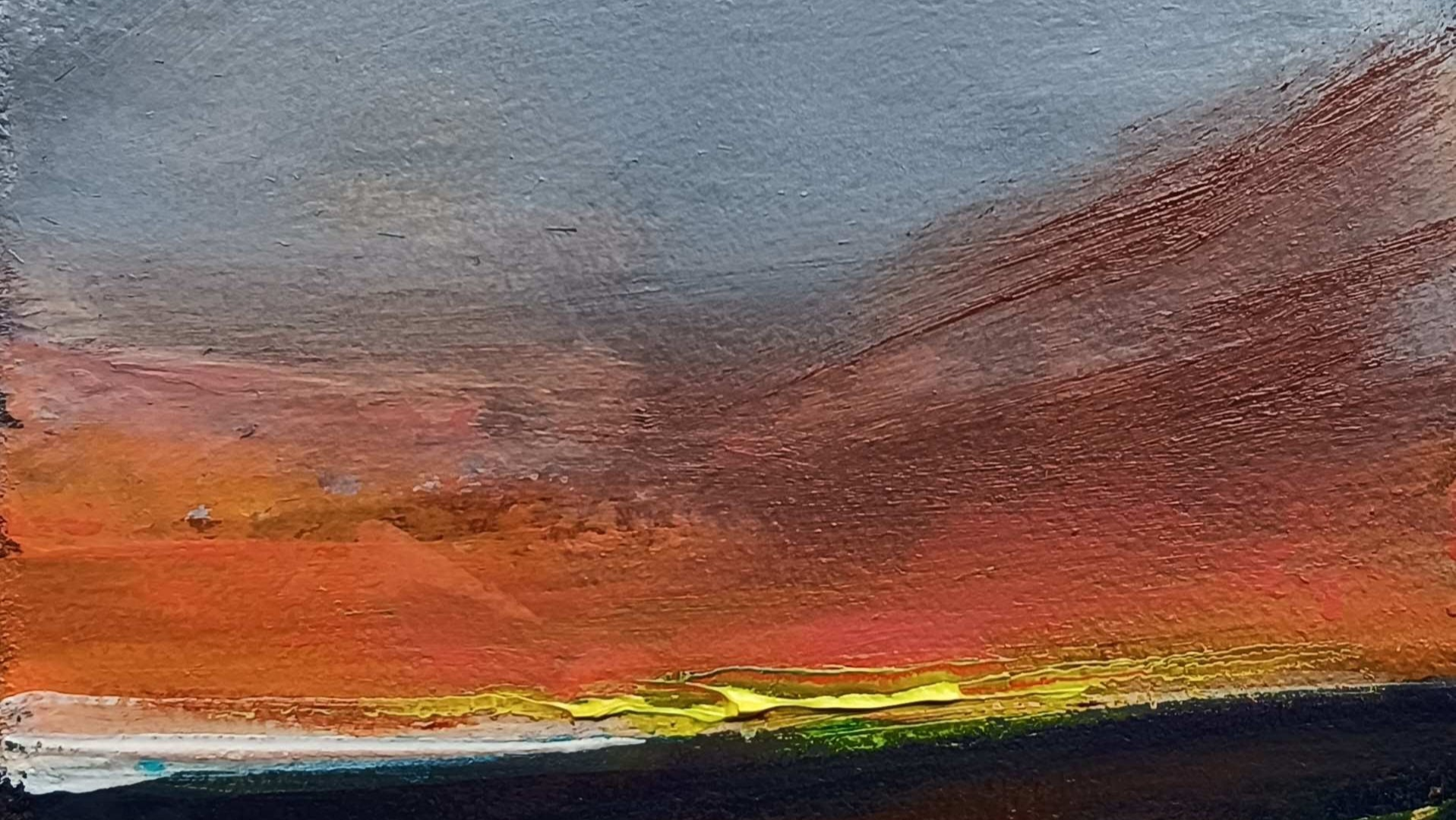 My paintings are born from a love of being out in the elements, especially the areas surrounding where I live. I interpret the experiences of time spent surrounded by the sights, sounds and feelings of the natural world.