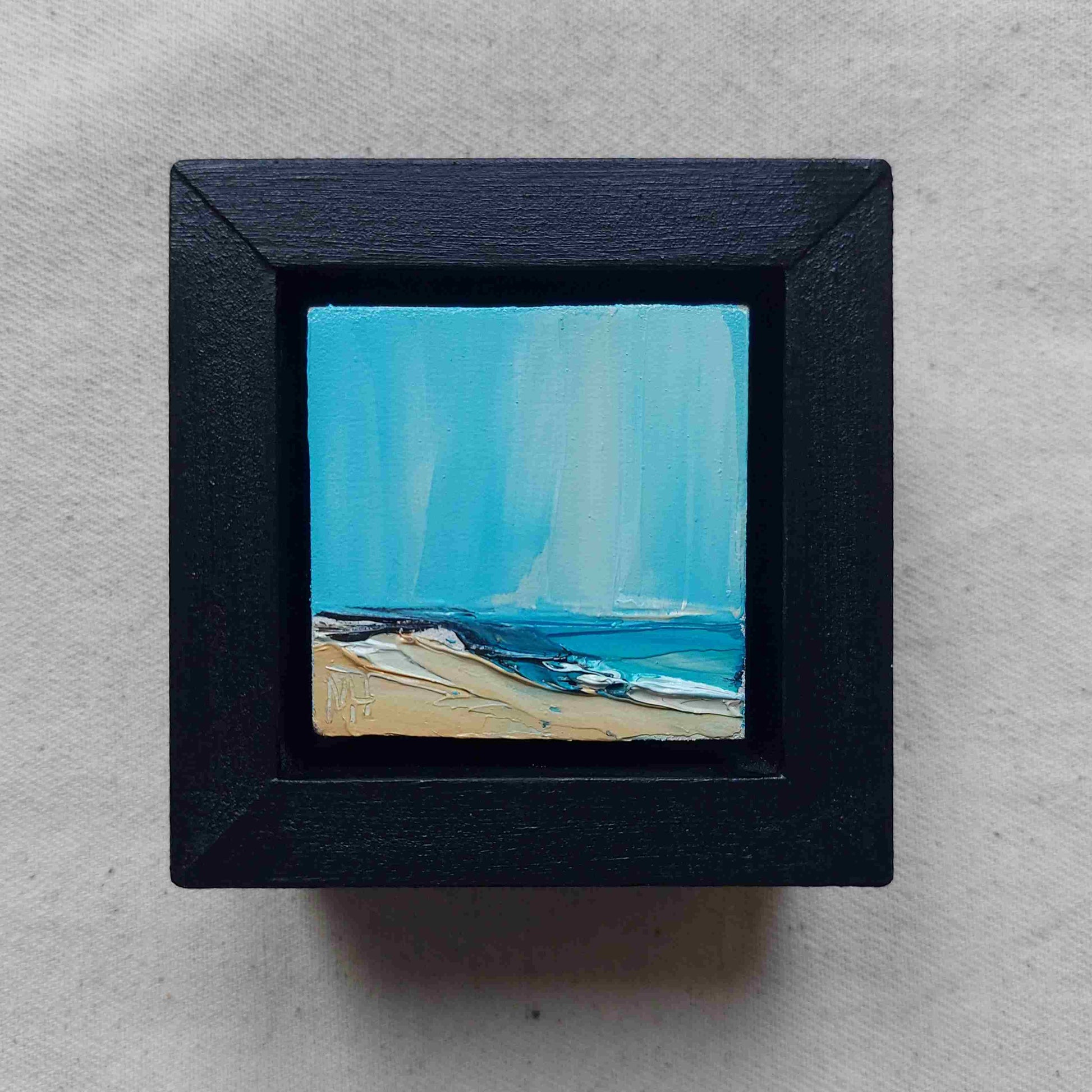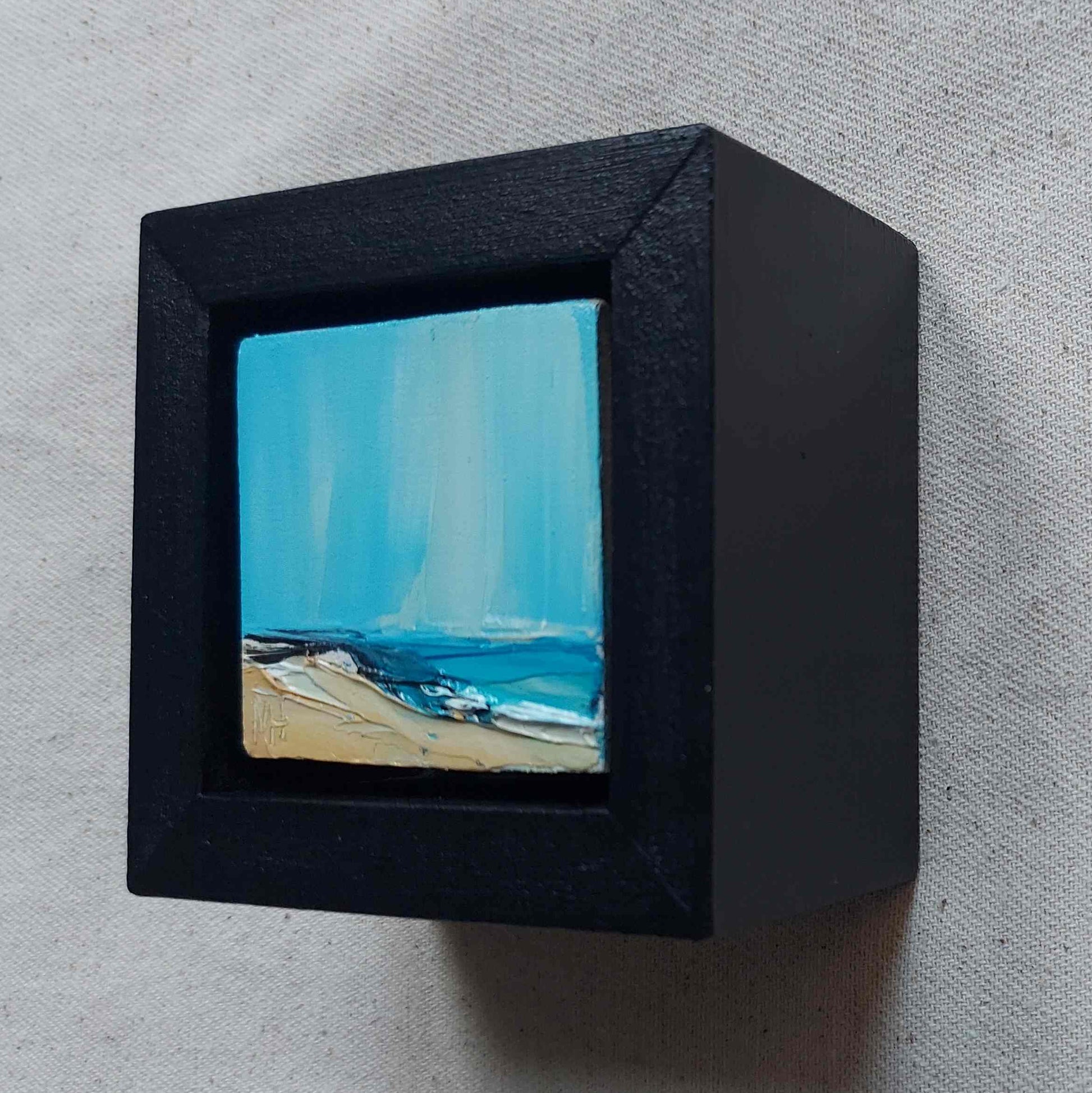 DESCRIPTION: Inspired by the South of England, this mini oil painting on board is framed and will sit nicely on a shelf or mantlepiece. Also ideal for wall hanging where space is limited.